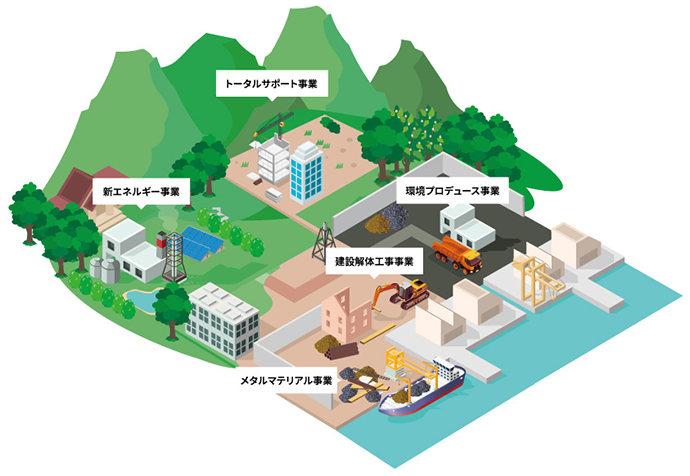 鉄鋼製品の主原料となる鉄スクラップをメーカーへ安定供給するほか、非鉄屑の海外輸出も行っております。